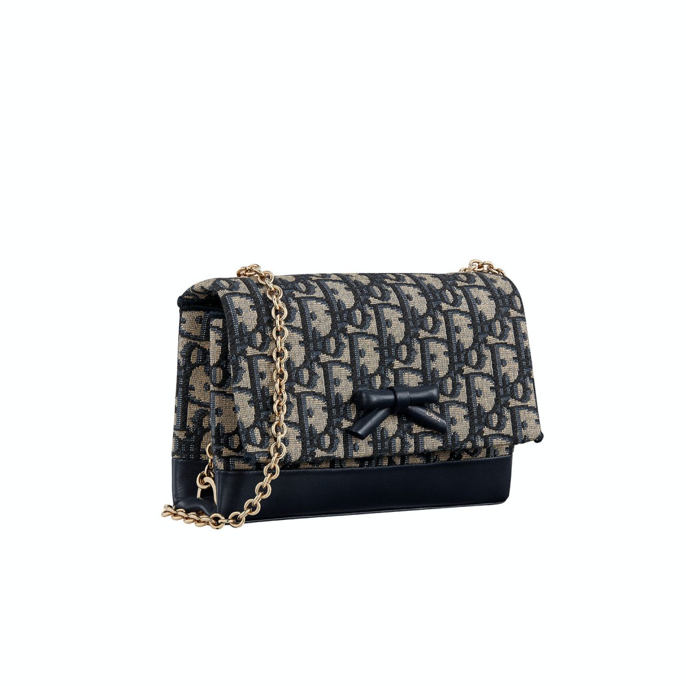 Dior蝴蝶結包推薦5:Oblique Bow藍色刺繡緹花迷你鍊帶包