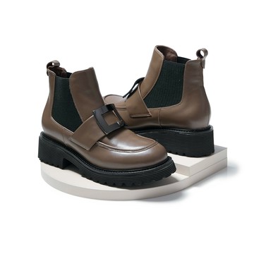 上面介紹了經典款切爾西靴,接著來一款特別的切爾西靴!咖啡色溫柔又甜美,搭配一個方扣設計,更添女孩可愛氣息!端莊、可愛、優雅風格都可以,靠一雙切爾西靴化身百變女神~