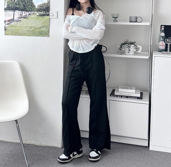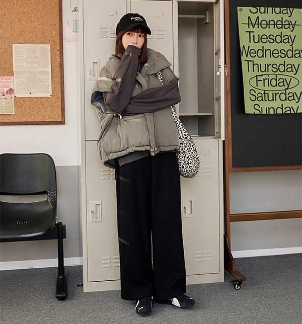如果不喜歡一般棉褲太軟、容易顯睡衣感,那Desire Shop這件直筒寬褲就能解決這項困擾!斜紋面料帶點挺度,穿起來輪廓分明,視覺上顯得更有精神、不會軟塌塌的,加上厚度適中,是一年四季都能拿出來穿的褲子。落地長度也是這幾年很流行的剪裁,再踩雙厚底帆布鞋,秒變酷甜女孩。
