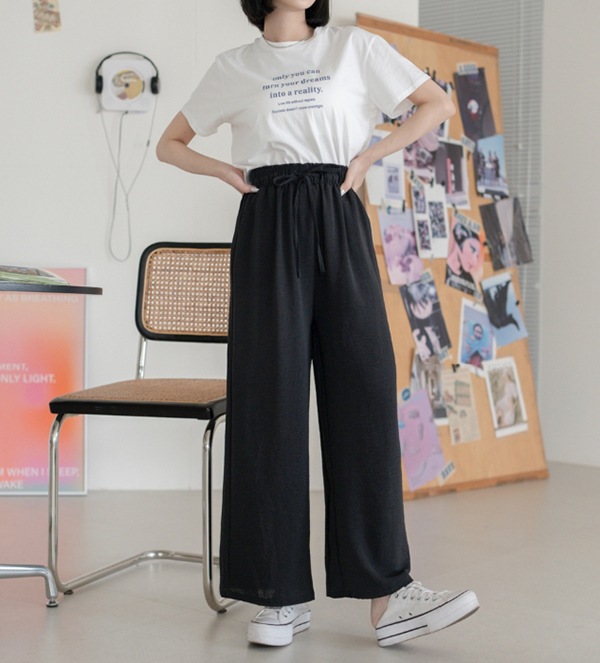 時尚棉褲七、Desire Shop 水洗抽繩腰鬆緊直筒寬褲