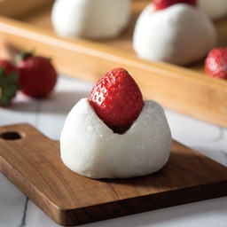 日式經典大福其柔軟麻糬皮與整顆鮮甜大湖草莓融合,象徵新年圓圓滿滿,傳統紅豆泥的綿密香甜與草莓微酸在舌尖化開,是圍爐後圓滿的收尾。