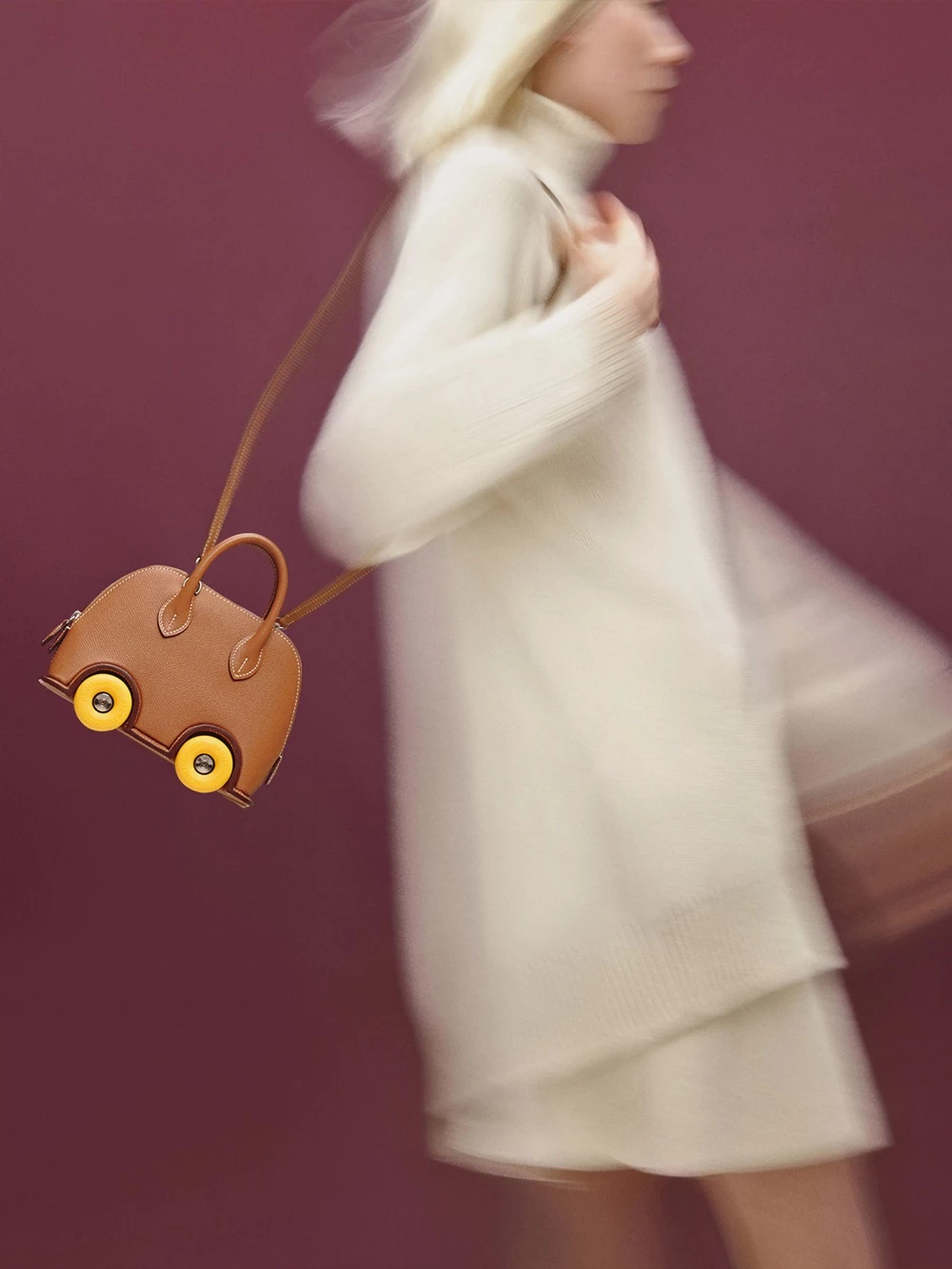 回到款式本身,若詢問愛馬仕資深收藏家哪一款「Bolide」才是他們的最愛,幾乎所有人都會回答「Bolide On Wheels」!該包款於 2022 年問世,設計上以迷你尺寸為基礎,並加入四顆小輪子,藉此強化「Bolide」過去為汽車旅行而生的歷史背景。其玩味可愛的外型,加上極其稀有的數量,使「Bolide On Wheels」成為拍賣場上最炙手可熱的收藏級包款。