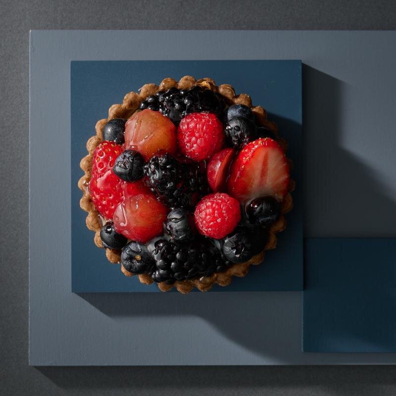 酥脆的塔皮中鋪滿自家製巧克力卡士達醬,上方點綴草莓、藍莓等新鮮莓果,外型可愛又充滿季節感,是讓人一眼就心動的甜點。
