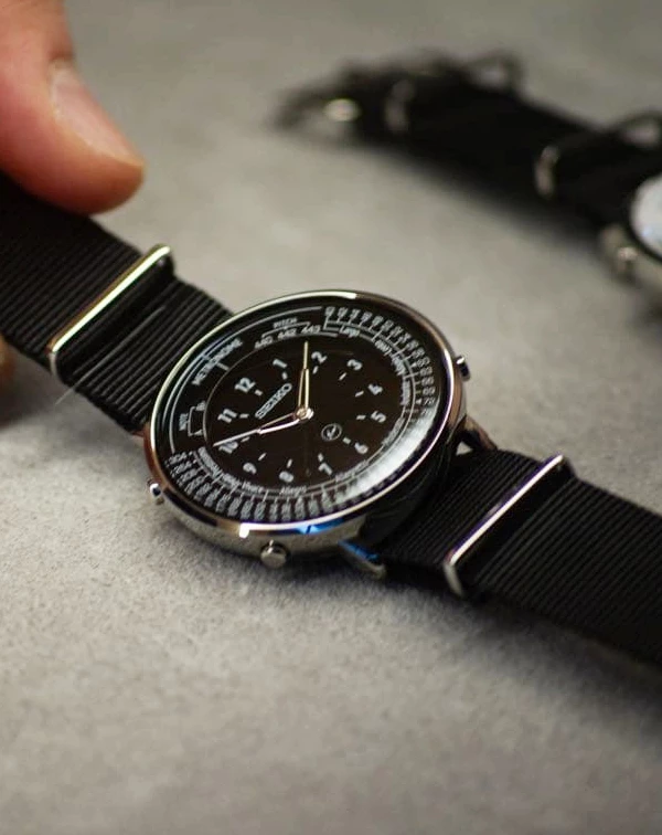 A:此錶款延續了藤原浩創辦Fragment Design品牌的一貫極簡潮流美學,採用極具辨識度的經典黑、白配色。錶盤6點鐘位置,印有指標性的「雙閃電Logo」,並搭配不鏽鋼錶殼與軍用級Nato材質錶帶,完美揉合了街頭潮流感與實用功能性。