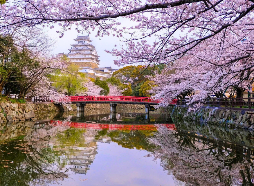 因純白城牆而被稱為「白鷺城」的世界遺產姬路城,當淡粉色染井吉野櫻與白色城牆交疊時,正是無數訪日旅客心中「日本春天」的最佳畫面。