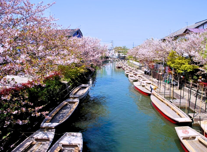 城外護城河可搭乘和船,從水面仰望櫻花與天守閣的組合,美得讓人說不出話。