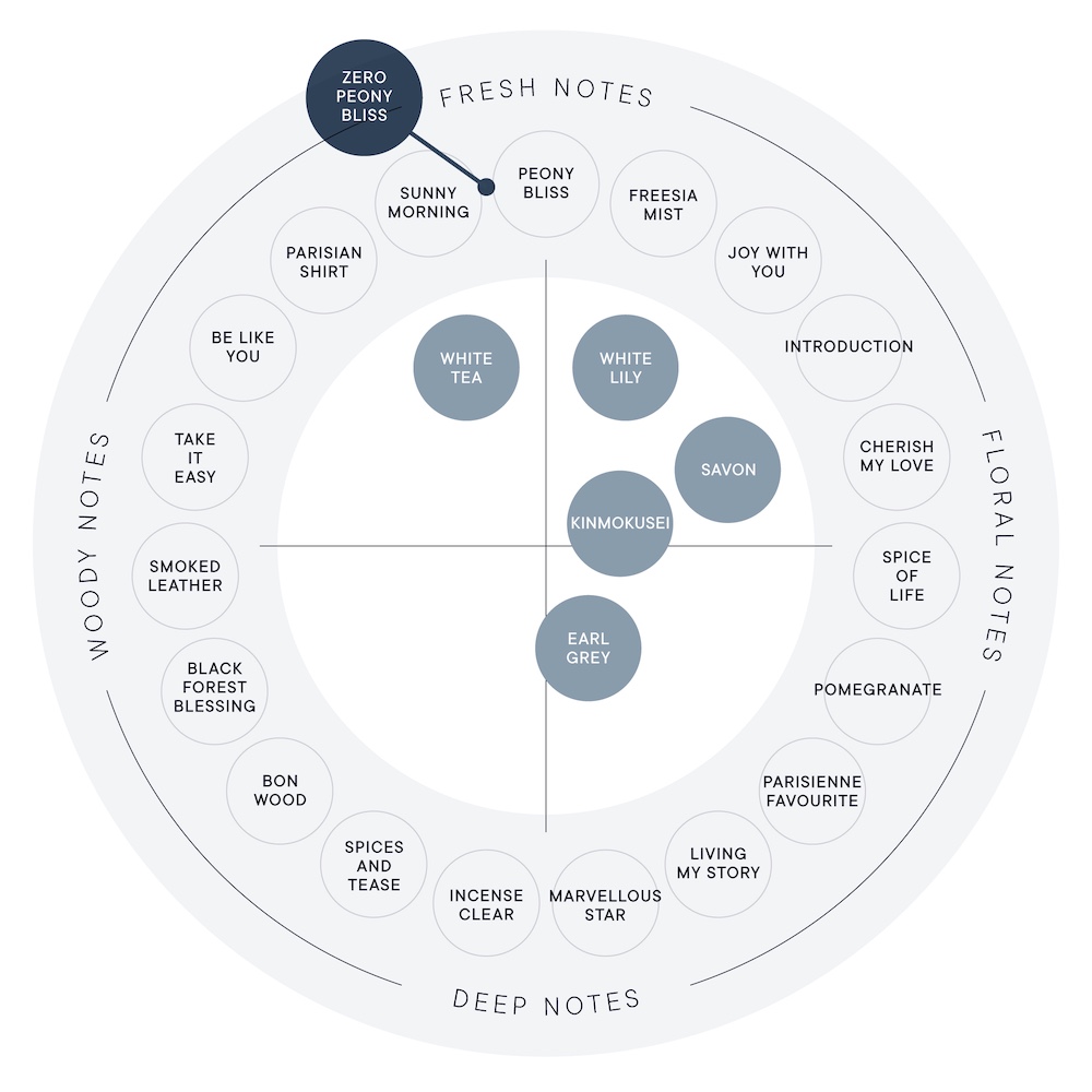 此次登場的 「ZERO 花舞芍藥」,靈感來自塗料製造商原本應被廢棄的白色塗料,巧妙運用於容器設計中。香氣由蘋果等清新多汁的果實、透明感海洋氣息,以及芍藥、小蒼蘭等華麗花香交織而成;尾韻融合麝香、琥珀與木質香調,溫潤且層次分明。將沉睡已久的容器與塗料重新結合,誕生這款每一次拿在手中都令人心動的期間限定香氛。