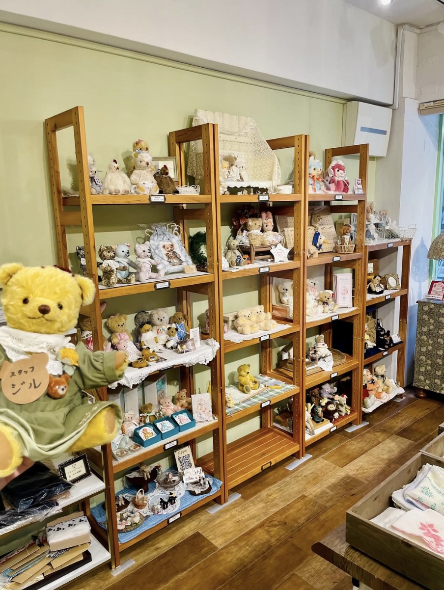 店面雖然不大,卻集結了琳琅滿目的泰迪熊,並且分成左右兩個區域,一區擺滿了從國外(主要是歐洲)帶回來的古董泰迪熊;另一區則是聚集了日本本土以及海外許多泰迪熊作家的作品,來到此處既像是在逛「泰迪熊展」,也像是在逛泰迪熊博物館一樣,無疑是泰迪熊愛好者的夢幻天堂。