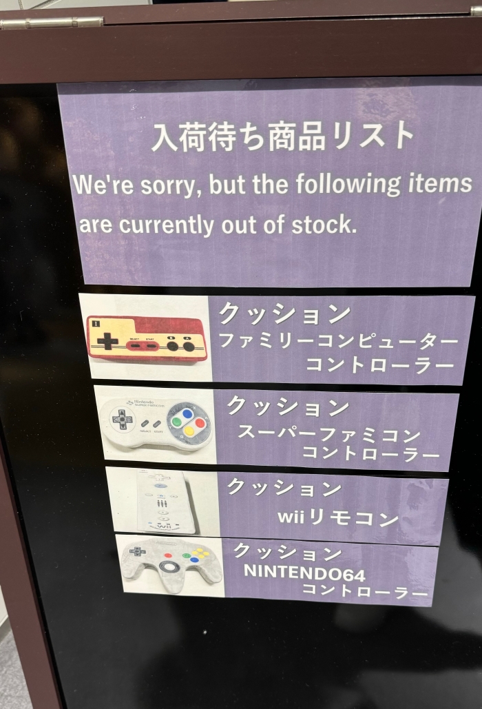 其中,不僅是剛開館時最熱門的瘋搶商品,至今都時不時會傳出沒貨消息的,要數台灣俗稱紅白機的Famicom、Super Famicom、Nintendo 64 以及 Wii 的巨大遙控器抱枕,可說是該官方商店區最具代表性的明星商品。
