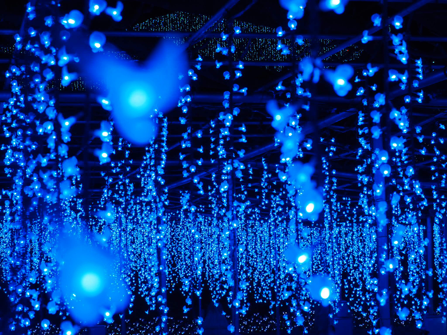 作為日本三大燈光秀之一的「光之花庭園」燈光秀,在活動期間會妝點超過500萬顆的彩燈,構成了與季節花卉相比豪不遜色的「光之花」夢幻世界。活動最大的看點就是用彩燈真實重現的花園象徵紫藤「奇蹟的大藤」,美崙美奐的景色絕對能讓你流連忘返。