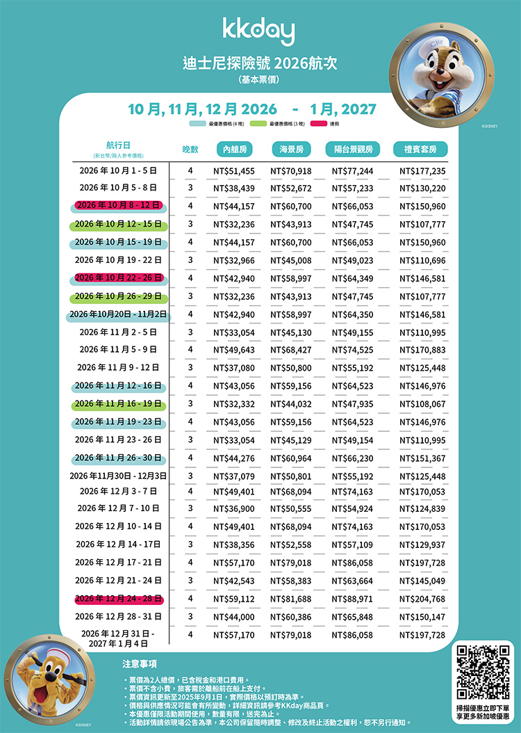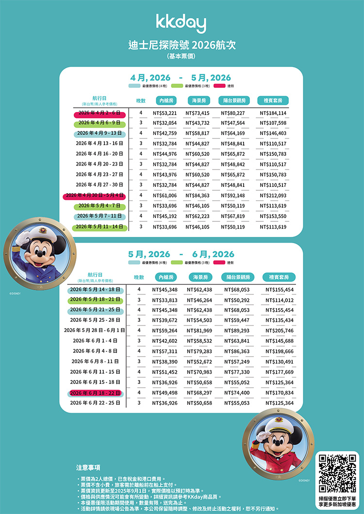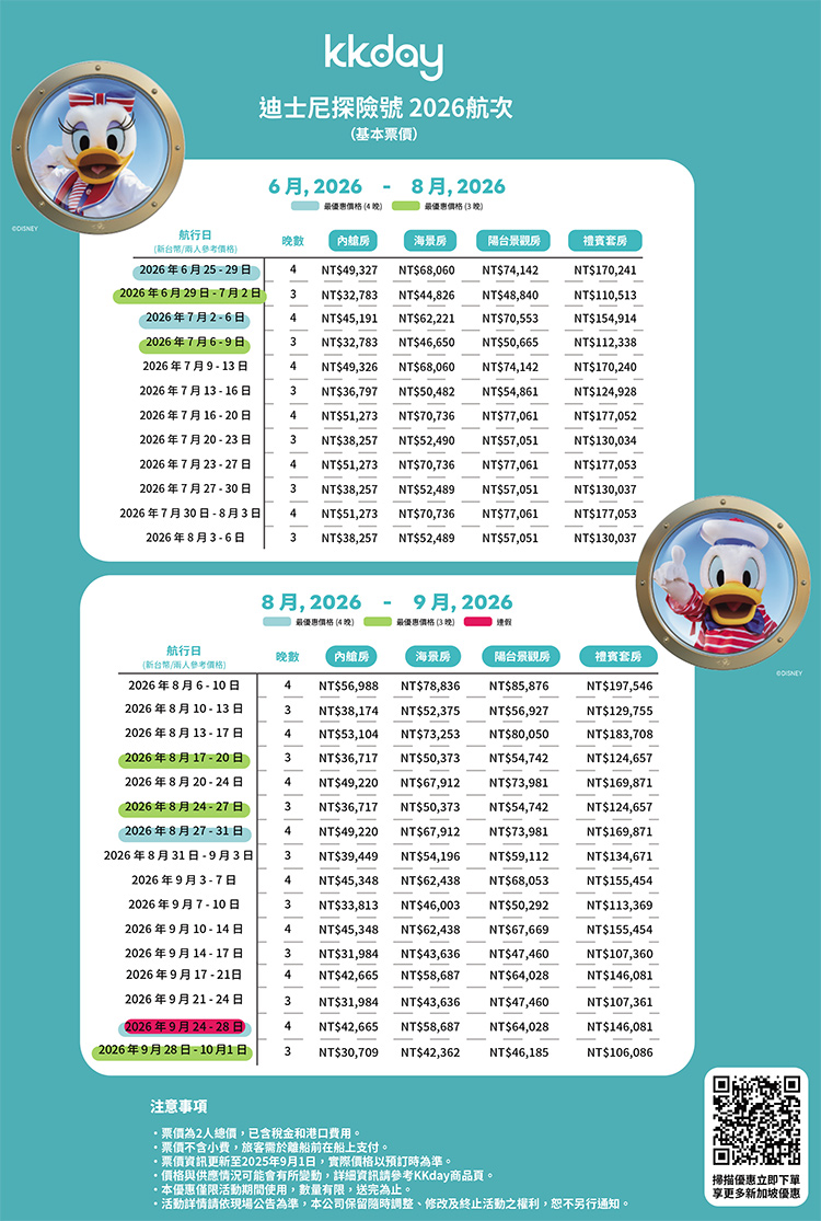 【迪士尼遊輪-2026航次與價格】