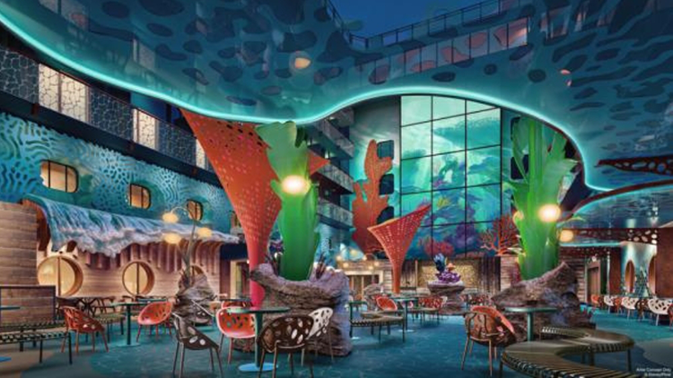 充滿魔力的沈浸式山谷,其靈感來源 於迪士尼百年來勇敢而動人的經典故事。在生機盎然的露天花園中,迪士尼遊輪首次引入了精彩絕倫的創新設計— 一座三層樓高、童話書城堡的藝術建築。這片區域設有先進的劇場舞台, 兩家快餐廳、一間雅致的酒吧和花園景觀客房。