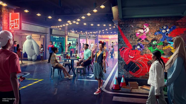 San Fransokyo Street靈感源自於迪士尼電影《超能陸戰隊》中的熱鬧城市,同時兼具東京的盎然生機與舊金山的悠閒氛圍。這個家庭娛樂區充滿了活力與生機,就像熙熙攘攘的街市,擁有各種互動遊戲、商店、影院等豐富的活動項目。