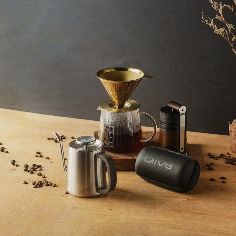 從外帶咖啡轉向手沖,是很多人踏入大人系生活的轉變。Driver 手沖套組一次備齊細口壺、濾杯與磨豆機,新手也能快速上手。感溫設計讓沖煮更直覺,日常多花幾分鐘沖一杯咖啡,其實就是生活質感入門最簡單的開始。