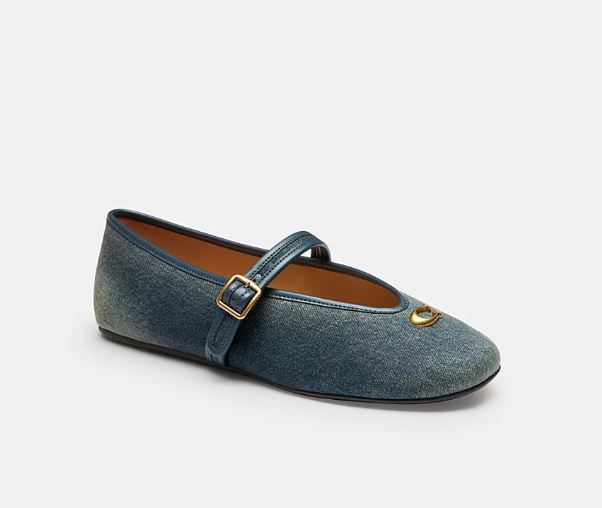 這款瑪莉珍鞋將經典的復古輪廓與現代丹寧美學完美融合,鞋面採用 COACH 標誌性的 C 字緹花帆布,以深淺交織的牛仔藍呈現層次感。瑪莉珍鞋標誌性的絆帶設計為中性的丹寧注入了一抹少女般的甜美與優雅,非常適合搭配白色短襪。其柔軟的內底確保了行走時的舒適度,無論是搭配牛仔長裙展現復古風情,還是配上俐落的西裝褲製造混搭衝突感,都是今年春天不容錯過的細節重點。