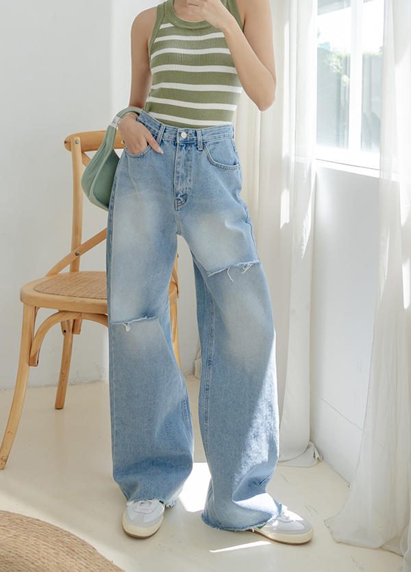 牛仔藍單品推薦八:抓破設計牛仔寬褲
