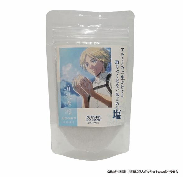 推出由全新繪製插圖打造的周邊商品,艾連、米卡莎、里維、艾爾文等角色將以徽章與壓克力立牌的形式登場。此外,還有「里維兵長的台詞便條紙」與「阿爾敏的『一輩子都用不完的』鹽」等充滿粉絲必看小彩蛋的商品在內,合計共販售36款原創聯名周邊商品。