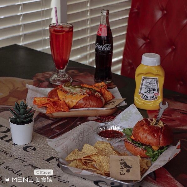 工業風格帶有濃厚的復古美式風情,提供燉飯、漢堡、奶昔、啤酒、咖啡、鬆餅與炸物,推薦起司熔岩花生牛肉堡、瘋狂綜合炸物拼盤、美式肉醬熱狗堡。