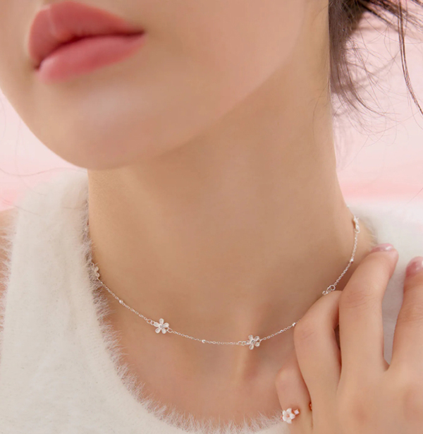 Bonny&Read這款純銀鎖骨鍊,將細緻的櫻花化作頸間亮點,低調中藏著閃閃發光的精緻感。搭配溫柔的春日洋裝,或是俐落的襯衫與西裝外套,都能在不搶戲的前提下,細膩地為造型疊加層次。小巧的墜飾讓頸部線條顯得更柔美,正是櫻花拍照穿搭的靈魂飾品呢!