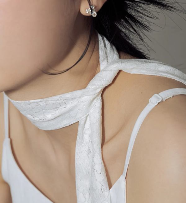 絲巾是春天非常實用的穿搭單品,當背心或洋裝領口比較空時,在頸間輕輕繫上一條素色絲巾,整體造型就會顯得更完整。這款白露薔薇絲巾的花紋低調細膩,搭配白色或淺色系服裝,就能為穿搭增加時髦感。加上一條小領巾,整體造型看起來也更有層次喲!