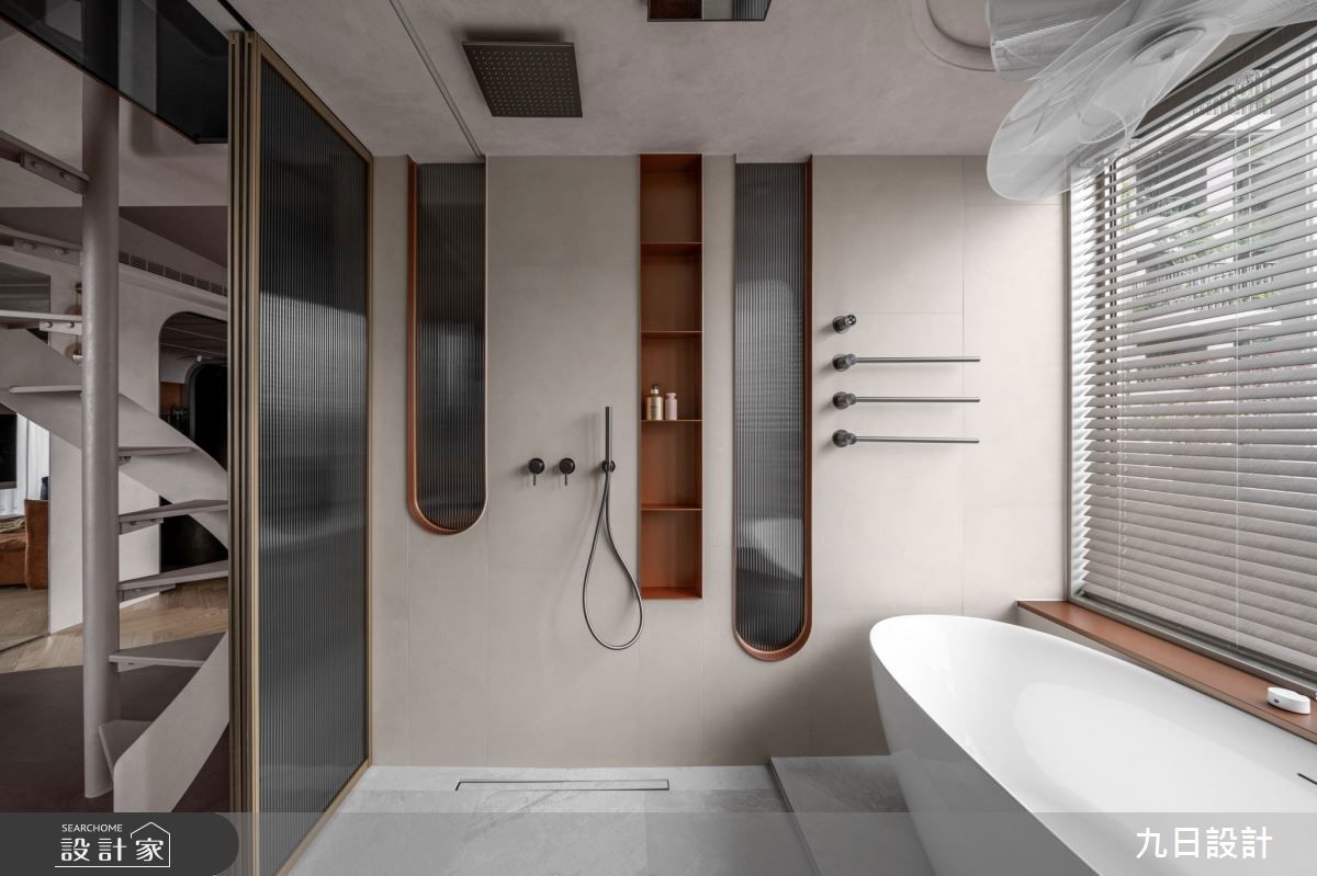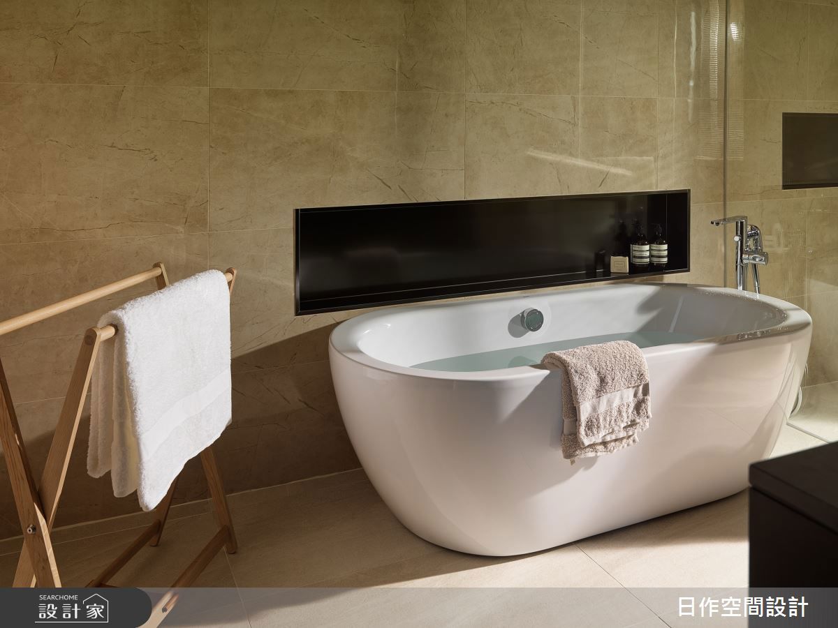 在淋浴區或浴缸旁預留凹槽空間,方便放置沐浴乳、洗髮精與香氛用品,不僅收納便利,也能讓牆面維持整體一致的設計語彙。