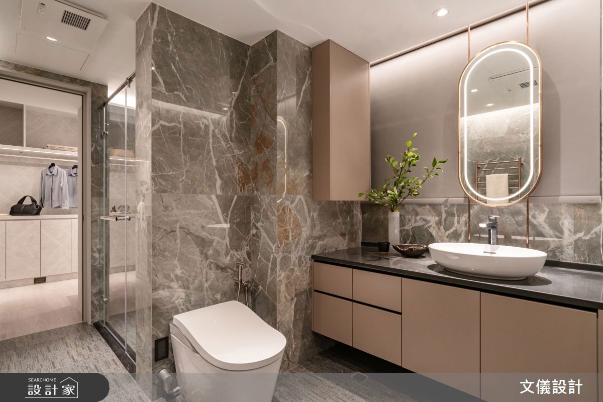 豪宅衛浴在建材選擇上,比起一般住宅衛浴更重視材質等級與施工品質,會下重本地使用天然石材、進口大板磚、鍍鈦金屬等等建材,做異材質的相互搭配,以及結合造型線板、倒角等等設計手法打造如同五星級飯店般的空間氛圍。選才時也特別重視防潮、抗污、耐用與防水等功能性,提升衛浴空間的長期使用品質與安全性,建立豪宅長期投資價值。