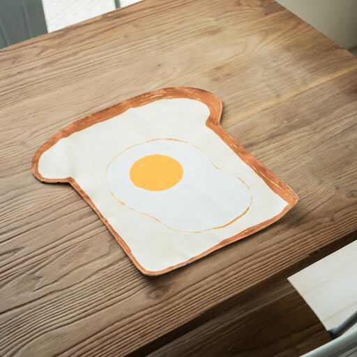 誘人的半熟蛋黃配上焦脆吐司邊,沒想到竟然是防水桌墊,