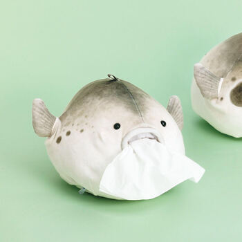 圓滾滾的河豚化身面紙套,用呆萌眼神發起療癒攻勢,