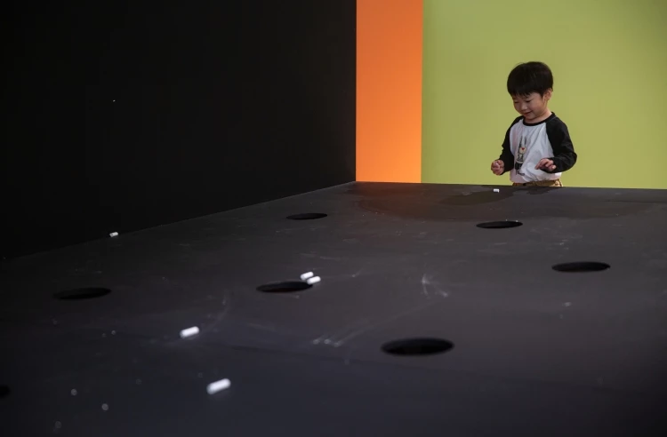 展覽最具開放性的段落,來自於觀眾的參與。明白實驗所透過「13號兒童樂園」系列,將歷史文本轉化為身體行動與聲音裝置,喚起跨世代記憶;楊雨樵的《塚》邀請觀眾以投擲粉筆的方式創造聲響,讓「考古」成為一種遊戲式的當代行為;倪祥則引導觀者重新體驗雕像與紀念碑的意義。除此之外,展覽更設置創作區域,邀請觀眾親手設計理想公園,回應北美館未來「地面為公園、地下為美術館」的發展藍圖。藝術不再只是觀看,而成為共同建構城市想像的行動。