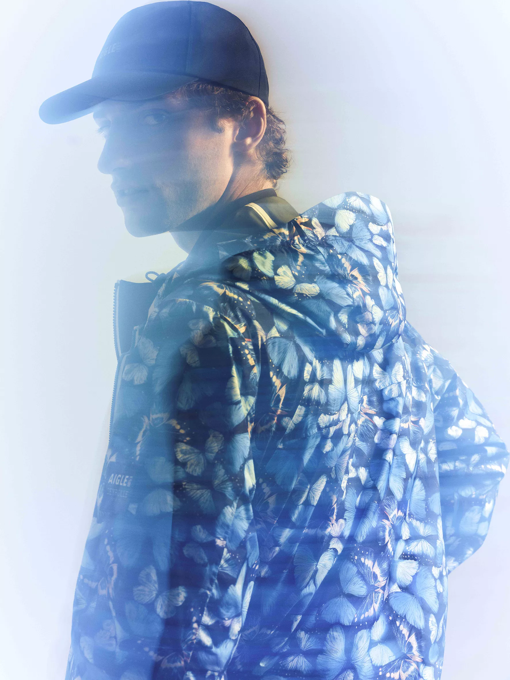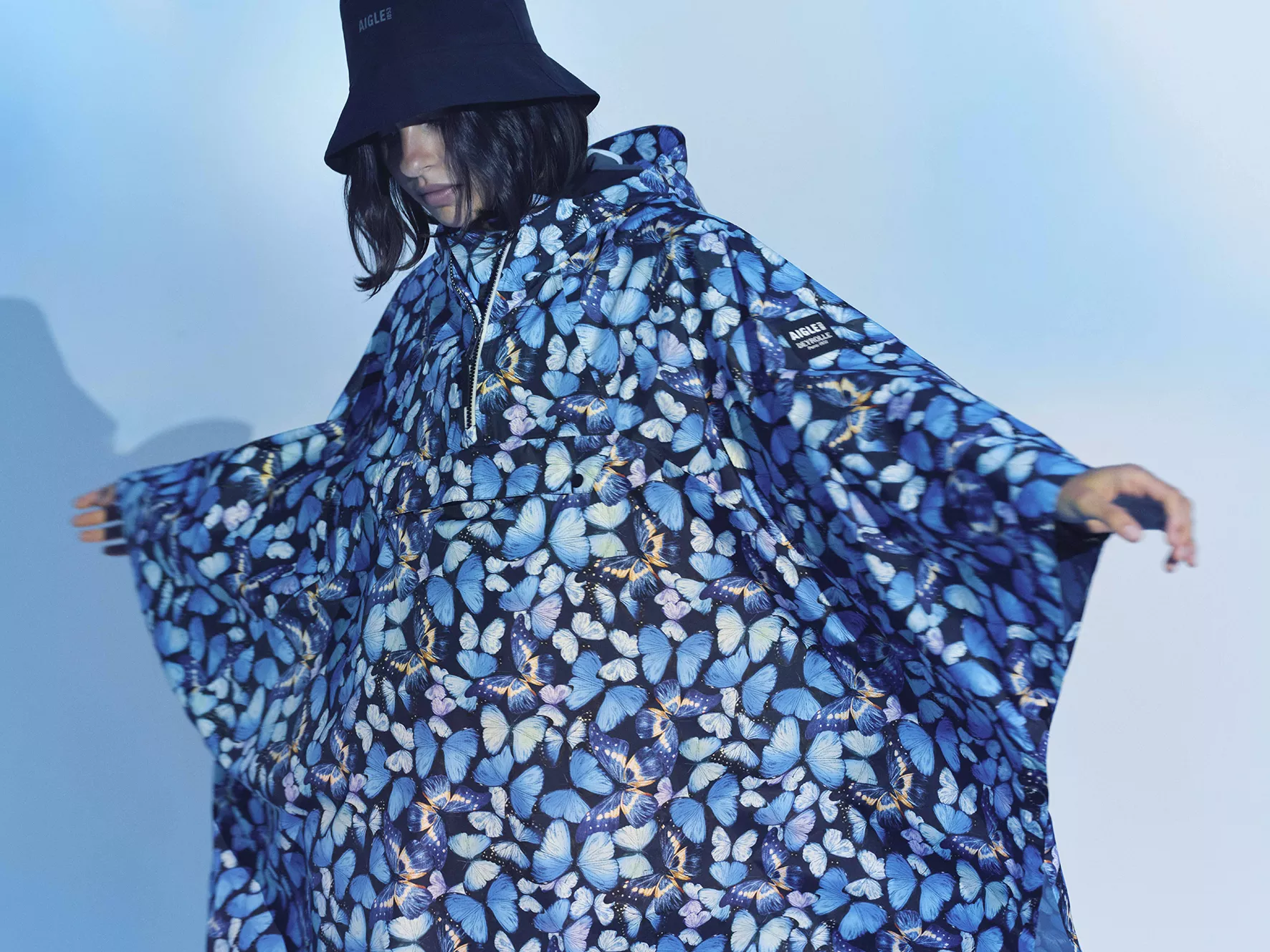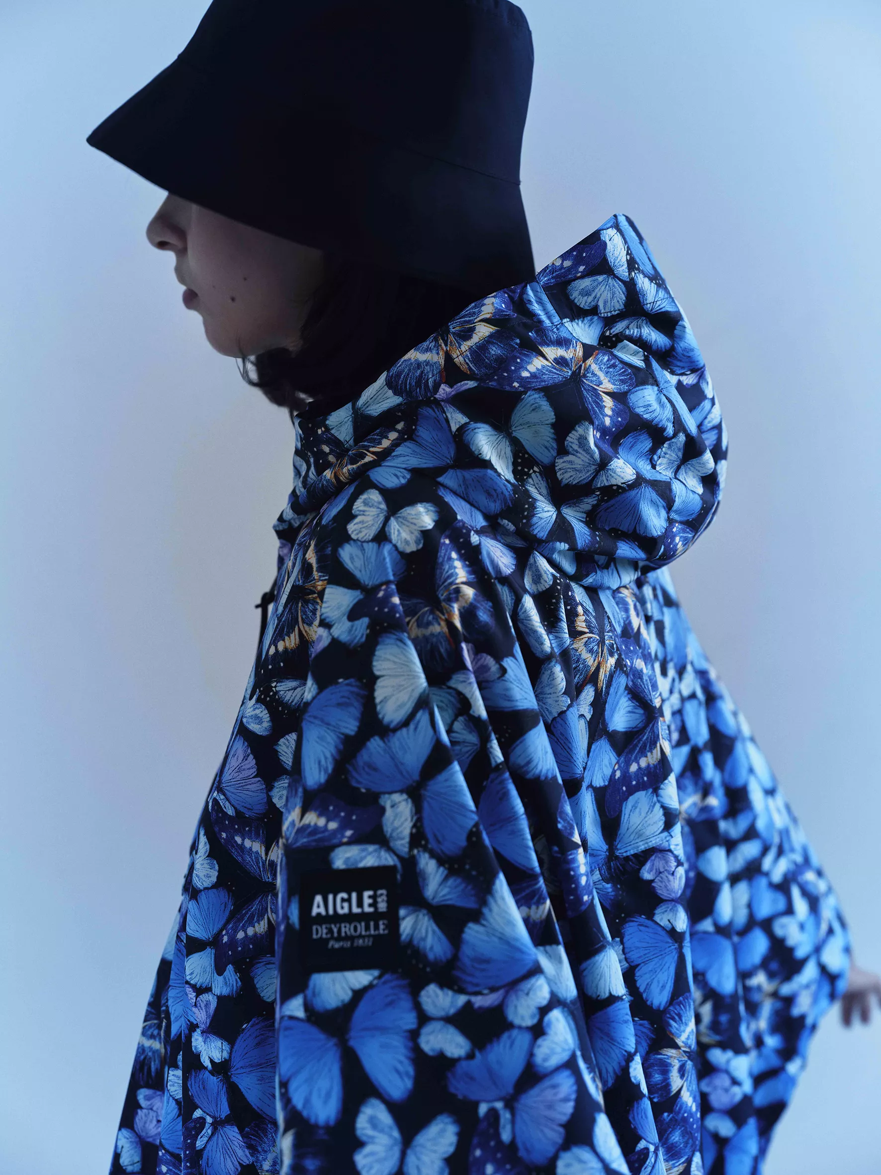以藍閃蝶為靈感核心,將其標誌性的金屬藍光轉化為極具辨識度的印花語彙。透過光影流動與色澤變化,為服飾、配件到經典膠靴注入靈動氣息,在理性結構與詩意美感之間取得平衡,讓每一件單品都不只是機能存在,更是一種貼近自然的時尚表達。