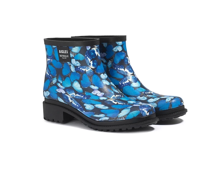 延續AIGLE經典工藝,將藍閃蝶印花融入標誌性雨靴設計。面對即將到來的梅雨季,也能在實用機能與造型之間取得平衡,讓雨天穿搭依然保有風格亮點。(商品售價:NTD 5,500)