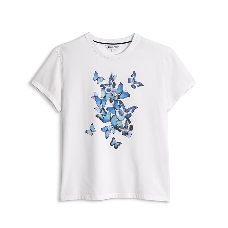 以純白底色襯托 藍閃蝶 印花,讓圖騰在視覺上更顯輕盈鮮明。無論搭配牛仔褲展現隨性態度,或混搭裙裝營造柔美層次,都能穿出不費力的時髦感。(商品售價:NTD 3,800)