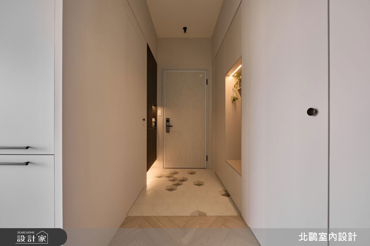 .無把手隱形收納牆:採用彈壓式門片,讓整面收納櫃看起來像是一道乾淨的建築牆面。減少凸出的把手,能顯著提升動線的流暢度與視覺寬闊感。