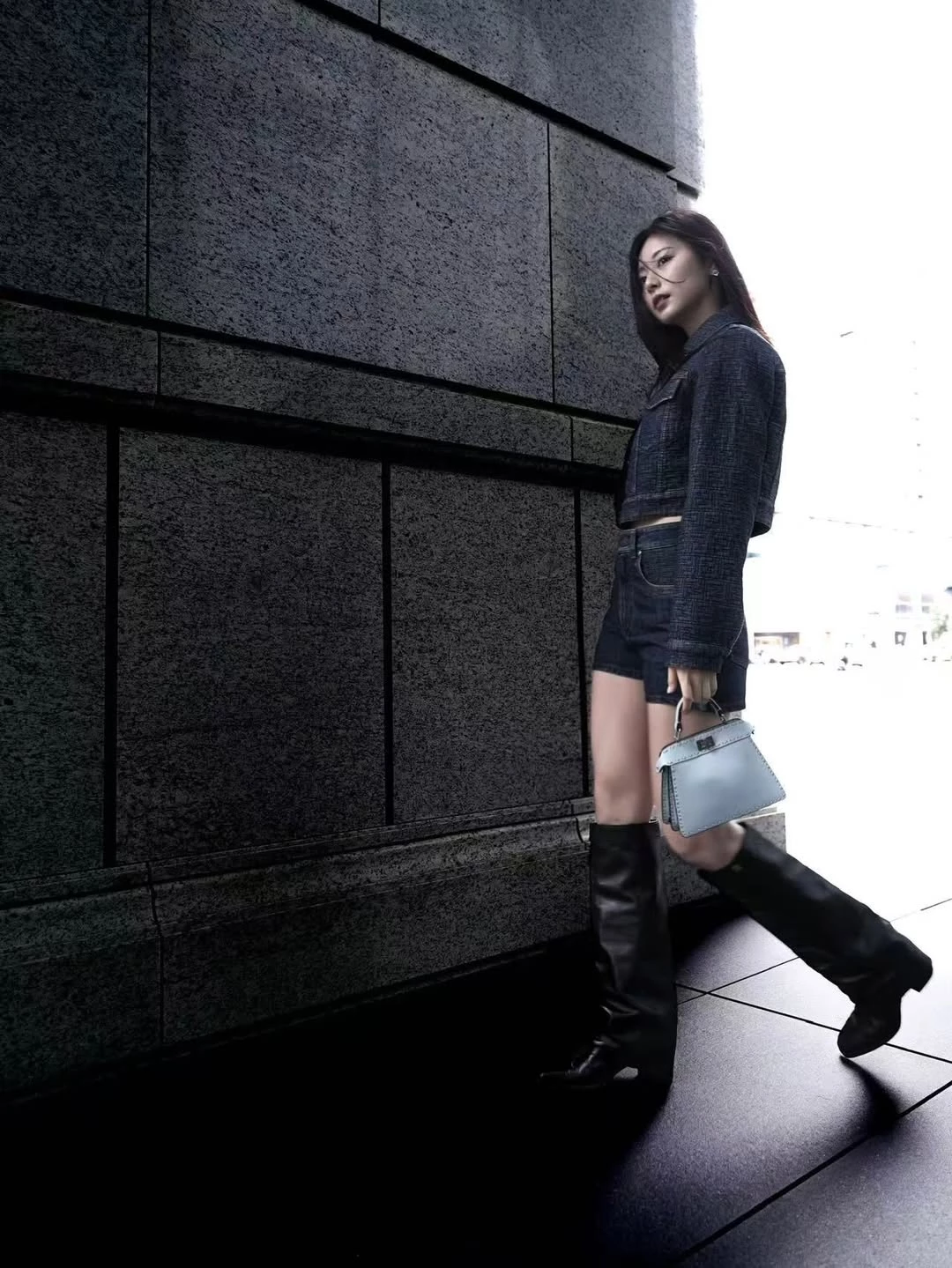 周子瑜此次的穿搭完美展現出優越身形。牛仔外套以短版剪裁呈現,微微露出肌膚細節,更突顯比例;褲款則採中高腰設計,不過短的長度讓整體更加俐落,也更容易駕馭。而在鞋款選擇上,寬筒及膝長靴不僅提升造型層次,也能修飾小腿線條。