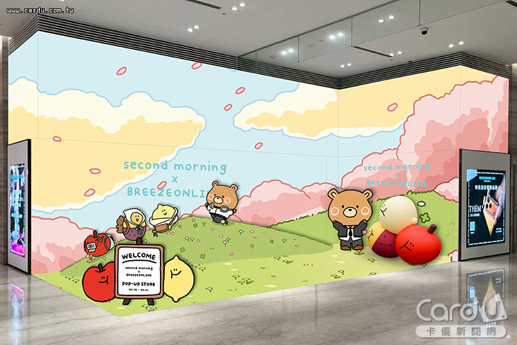 BREEZEONLINE微風精品線上攜手韓國插畫IP《Second Morning》,於4月10日至5月31日在微風南山1F BREEZEONLINE《Showroom》,開設期間限定主題快閃店,將Second Morning經典角色結合微風吉祥物Kazemon微風熊,轉化為多款兼具設計感與實用性的單品,包含韓系刺繡棒球帽、盲盒娃娃絨毛吊飾及質感吸管杯等。並精選多款具代表性的韓國設計和美妝品牌,如Mardi Mercredi、CARLYN、emis等,開賣包款、配件以及保養單品。