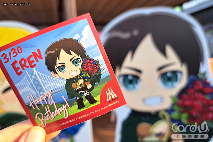 位於日本兵庫淡縣路島動漫主題樂園「二次元之森」,全新展開TV動畫「《進擊的巨人》×二次元之森」聯名活動,為紀念約翰·基爾休坦的生日,自即日起限量贈送「約翰生日紀念原創限定貼紙」,以四季花卉繽紛綻放的淡路島為舞台,設計出以花朵為背景的約翰·基爾休坦,與鐵粉一起歡慶生日。