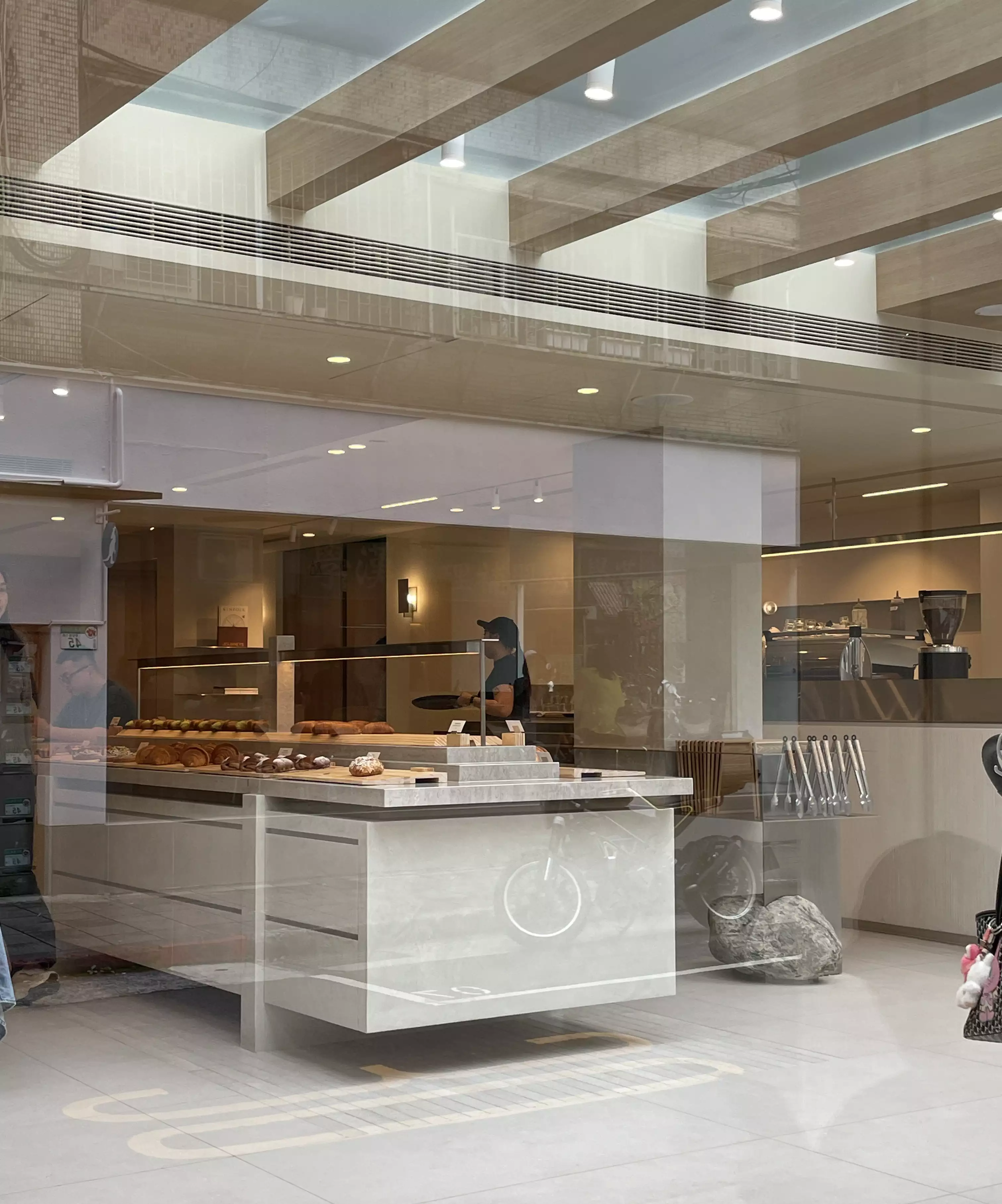 除了好吃的先決條件,近年來,烘焙店的空間也變成了一種風格體驗。從哥本哈根的極簡美學,到東京人講究的精品烘焙,買麵包早就不只是填飽空肚子,而是一種被設計過的日常體驗,這股風潮也吹向台北。French Twist 的空間找來初向設計操刀,將傳統麵包店那種堆得很滿、追求坪效的做法拿掉,改以溫潤的木質展台為主軸,保留空間的呼吸感,讓每個角落都乾淨、舒適又有層次。大面積落地窗引進民生社區的自然光,光影隨時間變化灑進空間,不僅讓挑選麵包的過程像在逛一間安靜、舒服又充滿細節的藝廊,也能坐下來慢慢品嘗,感受日常中的小確幸與美感。