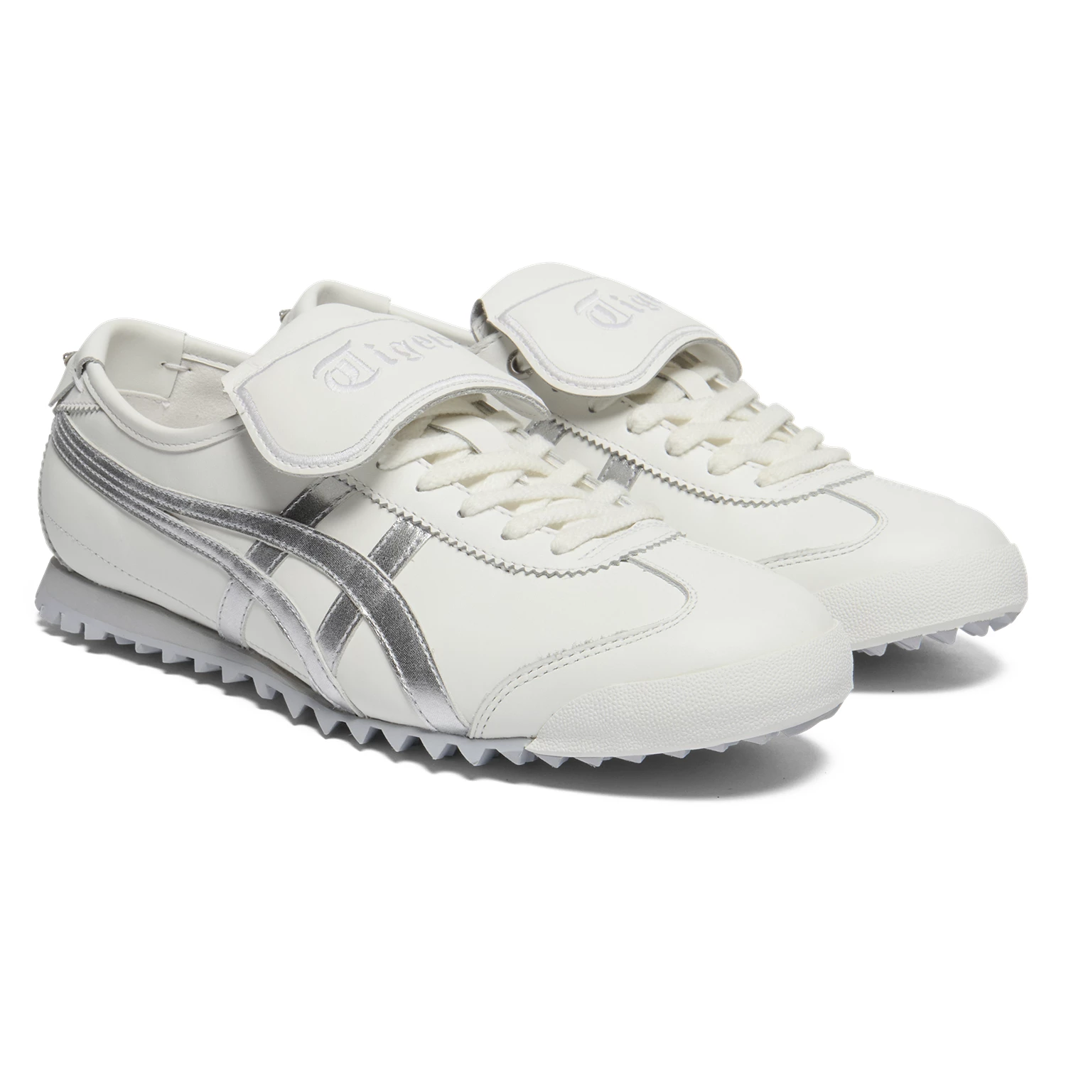 除了機能上的進化,全新MEXICO 66 GOLF在造型細節上同樣下足功夫。最吸睛的,莫過於外翻式鞋舌Tongue Wing設計,能夠減少沙粒進入鞋內,與鞋身同色系的鞋舌透過刺繡低調呈現品牌標誌,細節中見巧思;後腳跟則以金屬Logo點綴,在光影之間流露恰到好處的質感光澤,讓整體更顯精緻。配色方面,除了經典百搭的黑與白,也同步推出人氣極高的鬼塚黃與前衛感十足的金屬銀選擇,從球場到日常,都能隨著造型自由切換,輕鬆完成講究且時髦的風格搭配。