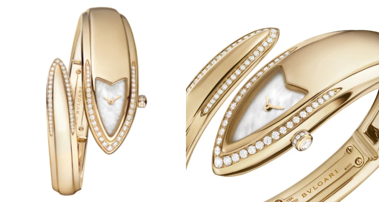 除此之外,Bvlgari亦同步推出常態款的「Serpenti Aeterna」,工藝團隊將其原本略微繁複、寫實的蛇形模樣,變得更加流暢線條的極簡,勾勒出兼具力量與美感的立體輪廓。其純粹光澤,與白色珍珠母貝錶盤柔和流轉的虹彩相互輝映,層層交織出細膩而迷人的光影變化。