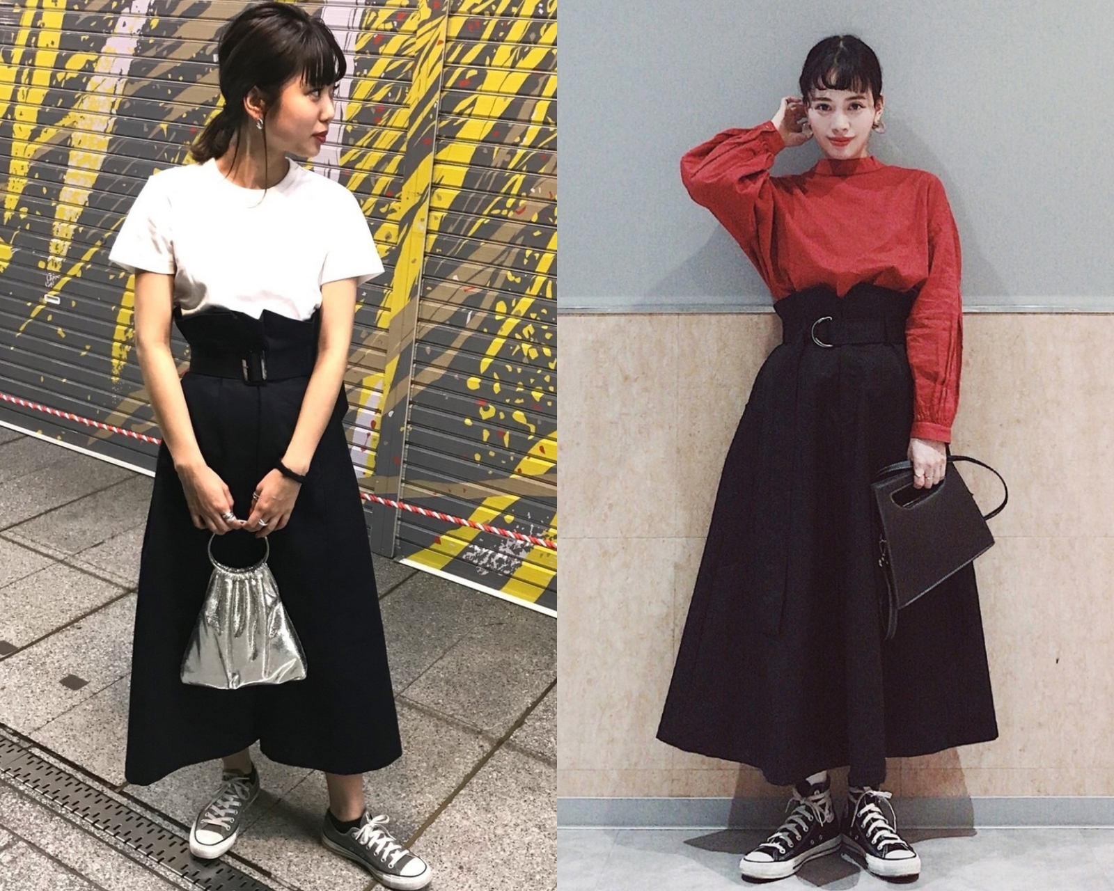 黑色裙款多半帶點個性風格,但想讓時髦感更顯著除了黑配白的保守打扮,將鮮豔的顏色加入其中也是個方法,像是霧面紅的襯衫與黑色相互搭配,就能展現氣勢又時尚的品味,走在街上自性又有魅力。