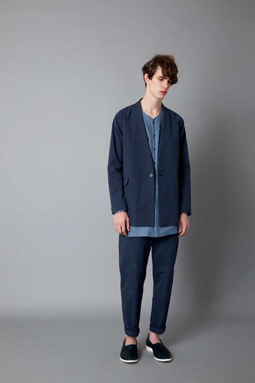藍色系是普遍男性的首選,原因不外乎是易於搭配的特性及專屬於男性的色彩印象。但透過不同深淺程度的藍也能精準地排除過於普遍性的刻板印象。從平凡的日常色系中表現出不平凡的穿搭技巧應用。