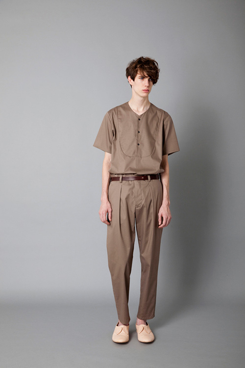 大地色系(Earth tone)雖然不是眾多男性在穿搭上立刻會聯想到的穿著色彩,但反而因為這點讓 Earth tone 在視覺上更加脫穎而出,成為清一色黑白色系中的注目焦點。將衣服俐落紮入以相同色系的深咖啡皮帶點綴,為 One-tone style 加入層次感的樂趣。