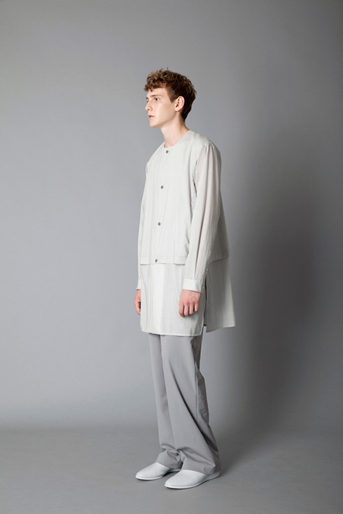 為了表現都會氛圍,白色的正色穿搭是經常被利用的色彩之一,但若是想增添一些日常感,米白與淡灰的色階穿搭反而更能給人舒服的視覺印象。偏長版的襯衫所延伸出的的寬鬆氛圍與色彩達到剛剛好的平衡,整體造型散發出一股不造作的天然感。