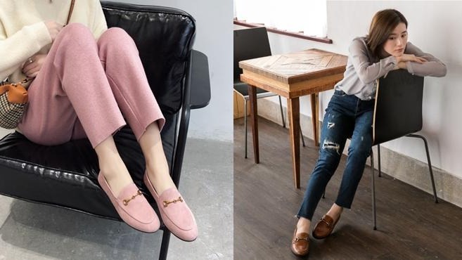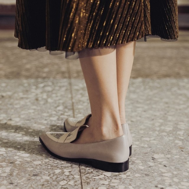 不分季節萬年皆可穿搭的樂福鞋款,以俐落的尖頭輪廓使雙腿顯得修長筆直,壓紋設計則呈現穿搭細膩個性。若想打造中性氛圍時,選擇錐形褲加上襯衫,讓氣勢與帥度兼具,即可輕鬆營造出復古女伶的經典衣著造型。