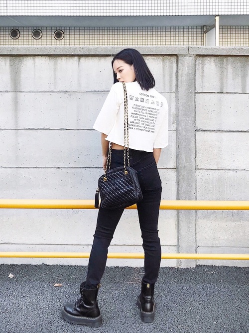 黑色的方型包款搭上菱格紋在點綴上鏈條元素,貴氣中不失酷帥的性格感,與簡單的 T-shirt 及同色系的長褲搭配即能創造出簡約卻不凡的時尚氛圍。