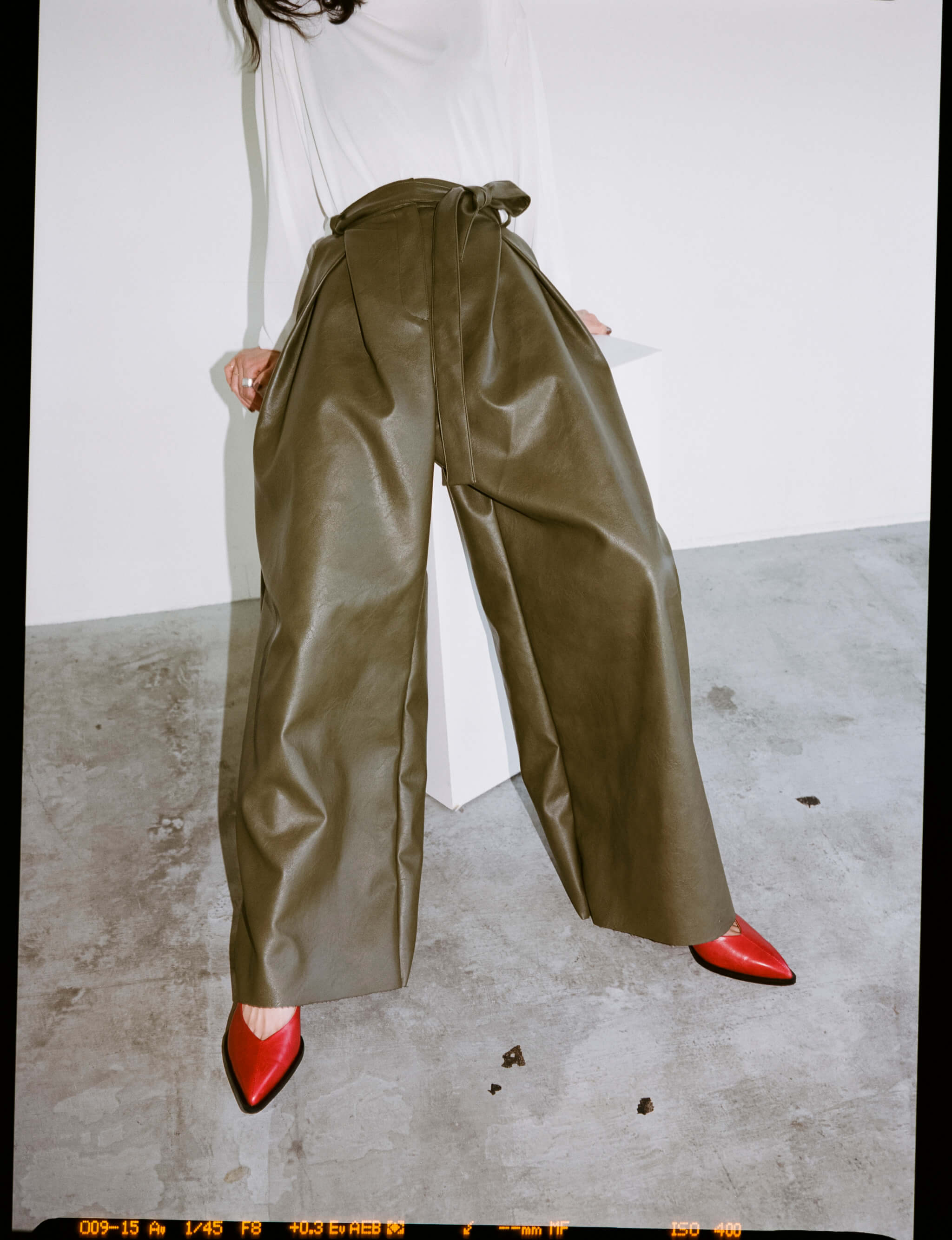 透過立體剪裁表現衣著輪廓是CLANE一直以來的設計重點,而上一季的不規則線條與拼接手法也延續到本季。前後衣襬的不對襯與裙襬的荷葉滾邊等設計,讓以輕熟年齡為客群的秋冬裝,典雅中且不失時髦氣質。顏色方面則非清一色的偏暗色彩調性,利用紅色穿插於低色階的彩度單品中展現秋冬兩季的大人感女子氣息。