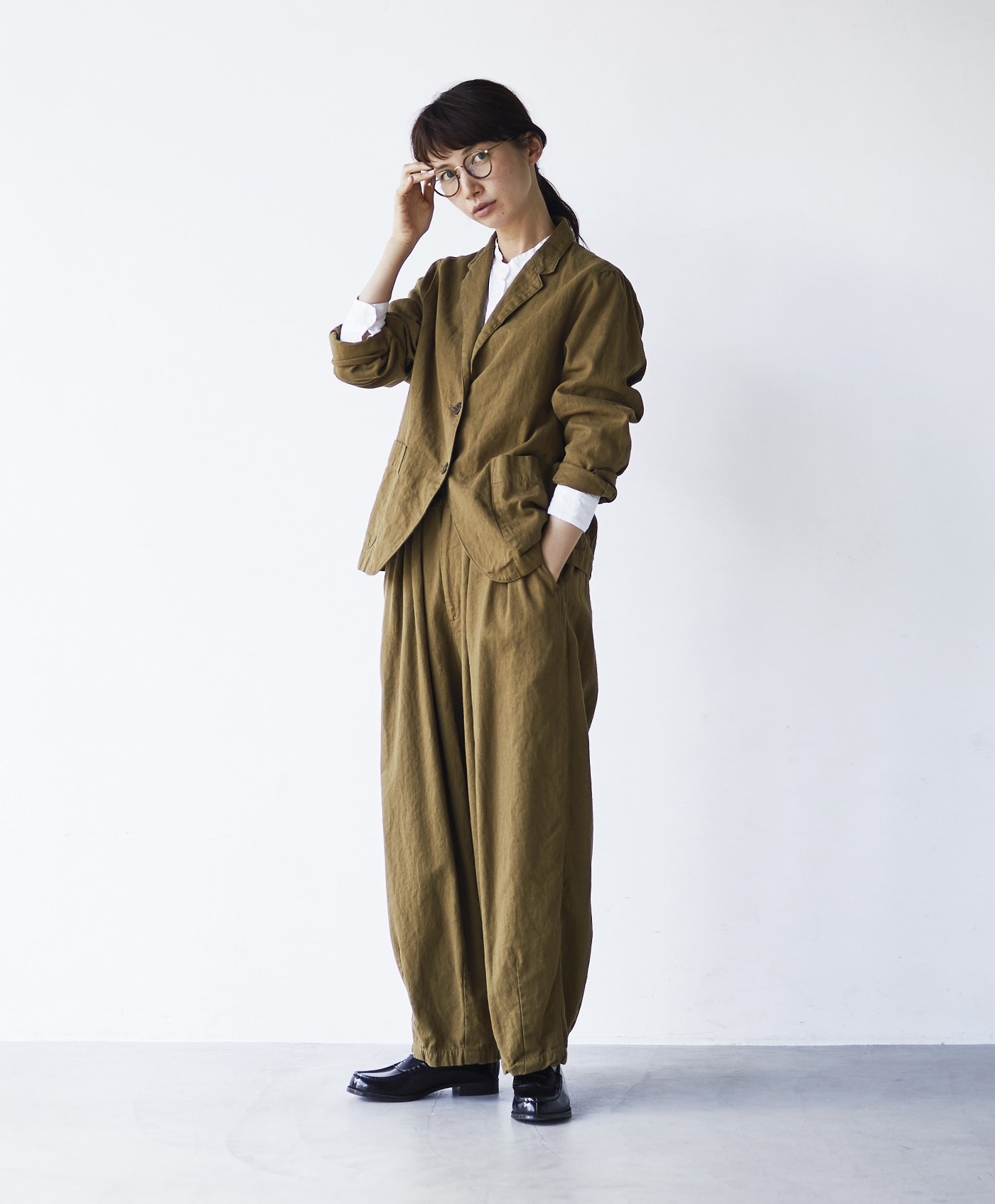要表達某種特定風格,除了版型剪裁之外,色彩是最直觀的視覺傳遞。以男性軍裝常使用的軍綠色系融入成套西裝夾克及長褲中,率性玩味的個格穿著反而在各式女性風格中獨樹一格!最後必定要以皮鞋點綴出紳士風格的要素。