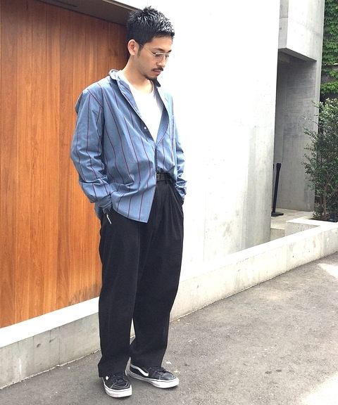 想要避免邋遢,以襯衫作為上衣是輕鬆穿搭的第一步。而素色的丹品雖然百搭,但不花些心思搭配的話,又會使整體流於過於隨興的印象。選擇紳裝氛圍的直條紋款式,即便是隨意搭配也能即刻展現造型感。