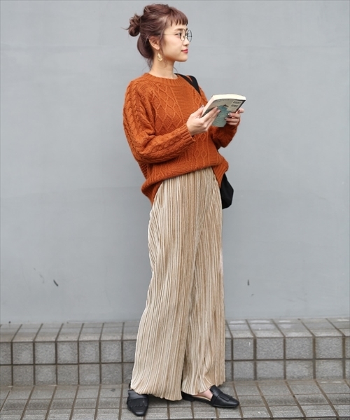 然而上述的寬褲款式都已是經常被用於穿搭的單品,中性的外型似乎也少了一點女孩感氣質。想要展現特色的話,不妨就選擇還不是那麼熱門的百褶款式吧。細緻的摺紋營造浪漫氣息,寬身的版型還是保有了輕鬆的休閒印象。