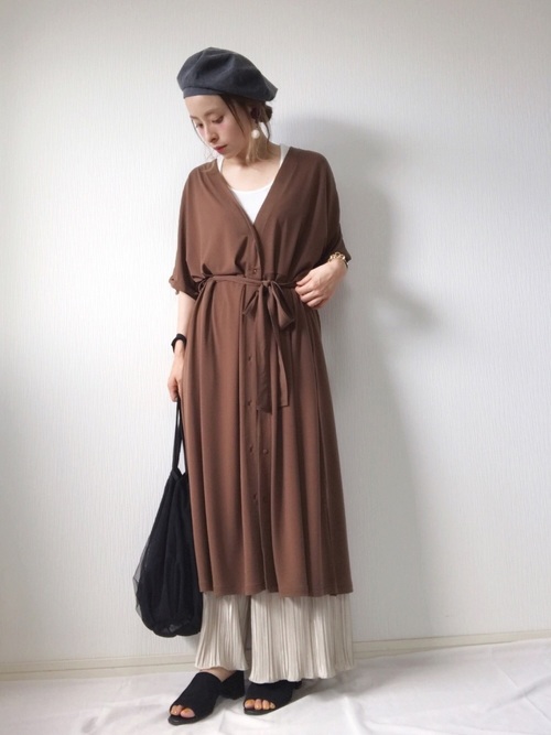 除了單純作為褲裝著用,百褶寬褲也可以作為展現多層次的內搭單品。穿著在一件式的洋裝內,利用兩種材質的差異使下擺處的層次效果展現極佳的穿搭品味。